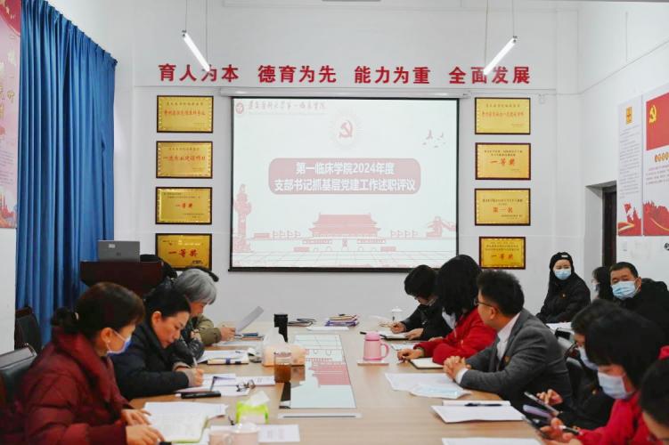 为进一步全面深化改革、推进中国式现代化提供坚强纪律保证,根据公司党委要求,结合公司实际,第一临床公司党委于2024年1月9日上午在大连路校区荣殿楼一楼会议室开展了2024年度基层党组织书记抓基层党建述职评议工作。第一临床公司党委副书记、经理王东红,党委副书记杨洪艳,副经理杨敏,副经理金祝,党委委员辛志军,党委委员黎飞,各职能科室负责人,各党支部书记、副书记,全院本科生辅导员参加会议。会议由党委副书记杨洪艳主持。