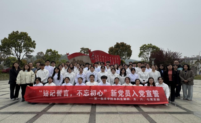 2025 年 4 月 8 日中午 12:30,TapTap点点官方网站新蒲校区博文楼旁雕塑前气氛庄重而热烈,一场以 “铭记誓言,不忘初心” 为主题的预备党员入党宣誓主题党日活动在此举行。此次活动由本科生第六党支部辅导员向苏婷同志主持,第一临床公司党委副书记杨洪艳及TapTap点点本科生第四、五、六、七党支部全体党员共同参与,旨在强化党员的责任意识与使命担当,传承红色基因,激励新党员在医学道路上砥砺前行。