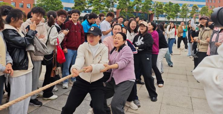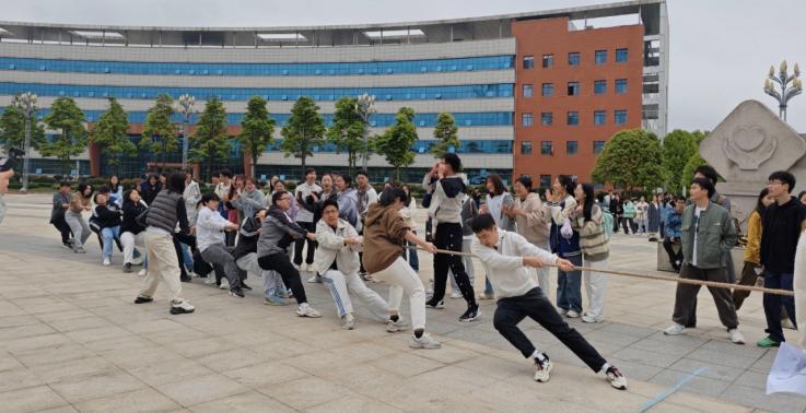 王东红经理为本次活动开幕致辞,期待通过此次赛事,同学们收获锤炼团结奋进的集体意识、磨砺迎难而上的意志品质、培育公平竞争的体育道德。本次比赛以团总支为单位,共有10支队伍参赛,采用循环淘汰制,历经循环赛、淘汰赛、半决赛及决赛四轮激烈比拼。比赛现场,参赛队员紧握绳索、脚蹬地面,在“一!二!拉!”的口号声中奋力拼搏。观众们呐喊助威,加油声此起彼伏,气氛热烈。教师们跃跃欲试,满腔热血进行着属于他们的表演赛。最终,2022级第二团总支凭借默契配合与顽强毅力摘得桂冠、荣获一等奖,2024级第三团总支和2022级第一团总支荣获二等奖,2023级第一、二团总支和2022级第三团总支荣获三等奖,2024级第一团总支、2022级第四团总支、2024级第二团总支、2023级第三团总支荣获优秀奖。