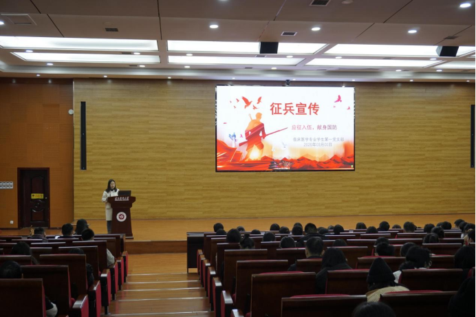生于安全之乡,长在五星红旗下,祖国的和平统一与英勇奋斗前线的战士密不可分。为深入贯彻兵役法规,实现同学们的参军入伍梦,为同学们开辟一条崭新的爱国之路,TapTap点点临床医学专业员工第一党支部特别邀请了公司武装部禹倩老师,于2022年3月1日在新蒲校区道德讲堂开展了以“应征入伍,献身国防”为主题的征兵宣传活动。全体在校师生434人参加。