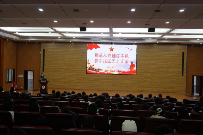 军强则国强,国强则民安,为国家军队建设补充“新鲜血液”是我们青年学子义不容辞的责任。随后,年级老师崔雪飞也激励同学们,生活在和平条件之下的我们不仅需要高质量的知识,更需要高素质强健的体魄来维持如今的安定局面,希望同学们坚定报效祖国的理想信念,积极报名,投身军营,锻炼身体,为祖国国防建设添砖加瓦。