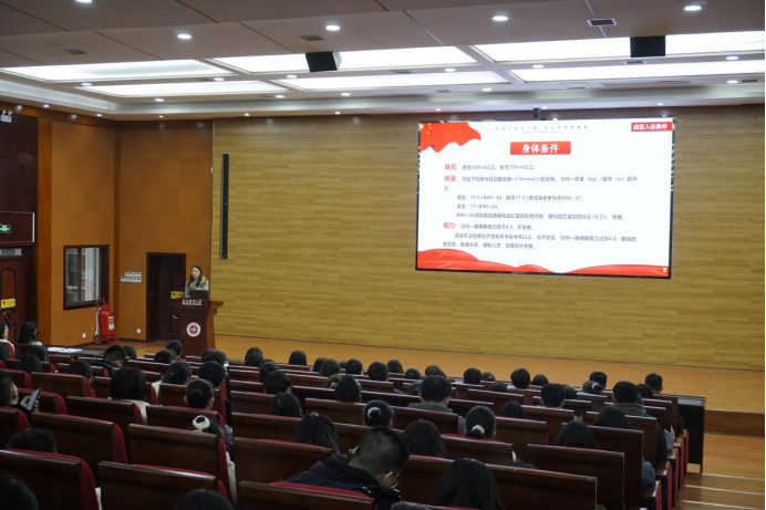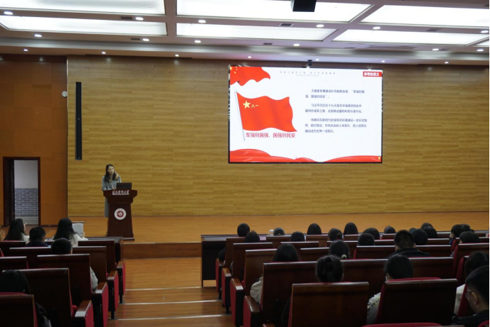 活动伊始,武装部禹倩老师为同学们详细的介绍了征兵入伍的时间与对象范围、年龄要求、身体条件等应征入伍要求,陈列出参军报名的基本流程,最后结合历年来公司入伍同学的事迹,着重介绍了参军享有的优待权益,激发了同学们的参军热情,希望能为国之安定而献身入伍。