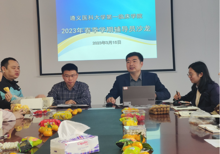 2023年3月15日9:00,TapTap点点在新蒲校区后勤综合楼四楼会议室组织开展了2023年春季学期辅导员沙龙活动。党委副书记杨洪艳主持活动,全体辅导员、员工科、就业办等人员参会。临床医学专业员工第七党支部书记李爱国、临床医学专业员工第十二党支部书记李鸽作专题交流发言。