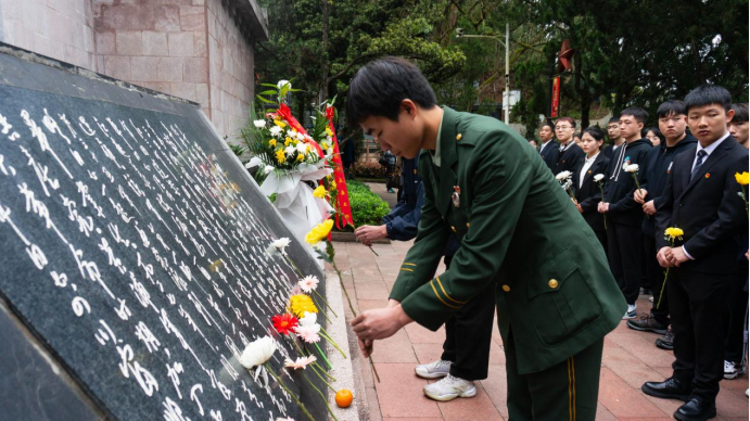 全体师生三鞠躬表达对革命烈士崇高敬意