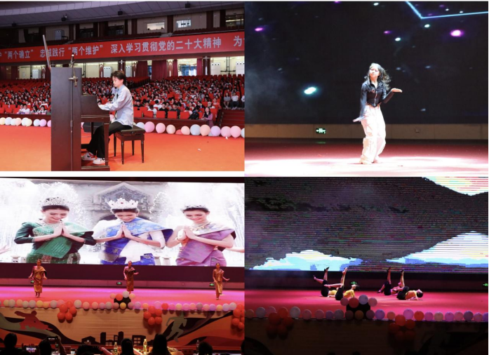 暖场环节,何诗怡带来了热情奔放的《black mamba》独舞,老挝职工唐达婉、阿弟、维娜、彭美琪歌舞演绎了《欢迎来老挝》,文化交融中增加相互了解。