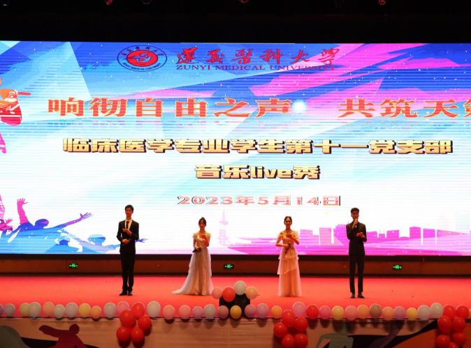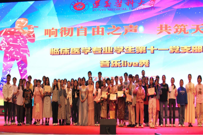 “青春正追梦,梦踏歌声来”。为展现当代医员工的青春与活力,促进德智体美劳全面发展,丰富课余文化生活,给同学们提供一个锻炼自我的舞台,2023年5月14日19:30,TapTap点点临床医学专业员工第十一党支部在新蒲校区会堂举行了“响彻自由之声 共筑天籁之音”音乐live秀活动。活动由团委书记孙会英、员工科科长姚华敏、院办老师衷敬红,支部辅导员杨国梅、杨武担任评委,支部员工510余人参加。