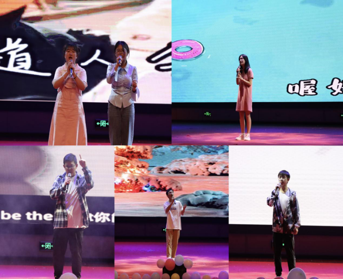活动由焦灿同学带来的暖场节目钢琴独奏《你的星河》正式拉开帷幕。首位参赛选手程茂芹以一首《关键词》开场,以动情的歌喉诠释了自爱与他爱的本质,随后《最佳损友》《海芋恋》《你的答案》等11首歌曲逐一精彩呈现,一首首悦耳动听的歌曲犹如一幅幅水墨画缓缓地铺呈在观众面前,让同学们身临其境,现场气氛热烈激越,呐喊助威声、欢呼鼓掌声此起彼伏。张紫妍、张吉喆共同演唱的《是妈妈是女儿》,用打开心扉、深情对唱的形式,将天下母女爱的寄语化作心灵的倾诉,大屏幕投放着一张张同学们与妈妈的合影,在动情的歌声中使人不禁泪湿眼眶。