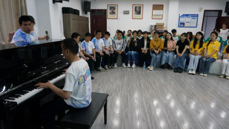 接着,孙会英老师以一首钢琴曲《月亮代表我的心》温暖了在场师生的内心;视障少年班胡永顺同学带来的钢琴曲《雨的印记》,跳跃的音符下藏着对生命的敬畏;黄琦等3位同学带来吉他弹奏《飞得更高》,带领现场听众如雄鹰在天空中翱翔;汪琪琪等4位同学激情澎湃的演绎了诗朗诵《黄河颂》,强烈的气势彰显了他们对生活坚毅的决心和一往无前的勇气。同时TapTap点点同学们也为大家献上了诗朗诵《种星星的人》,钢琴曲《菊次郎的夏天》,歌曲《是妈妈是女儿》等节目。全体师生合唱《启程》,并在欢声笑语中为视障少年班10名同学拍摄了毕业照。