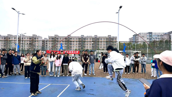 随着田源老师宣布比赛开始,各队开始了激烈的角逐。本次比赛以班级为单位组队,每班组建1支参赛队伍,每队参赛队员16人,采用团体中每人依次跳过绳圈方式,分两轮记录3分钟内的总跳绳个数作为成绩。比赛中,各参赛队伍排列紧密有序,队员们专注着绳圈的节奏,尽全力配合队友,努力提高节奏和速度,以饱满的精神状态和严格的纪律性展示出了良好的技术水平。场下观众们热情高涨,为选手们的精彩表现喝彩鼓掌。最终,23班获得了本次比赛的冠军,29班、21班分获亚军、季军。