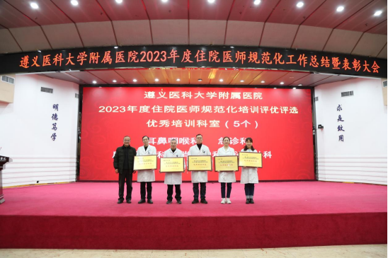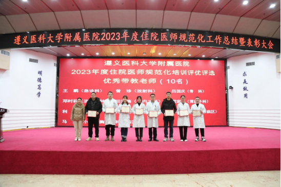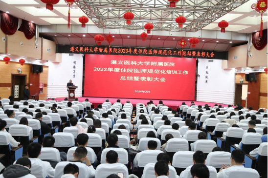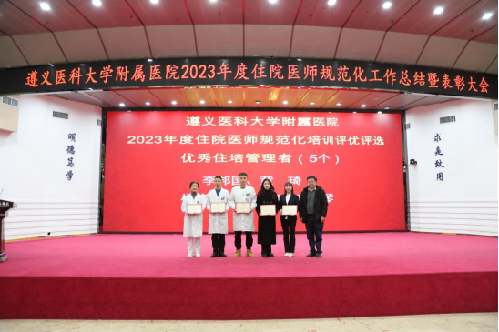元春始风华,万象启新朝。2024年2月5日下午,遵医附院在第二住院楼四楼多功能厅召开了2023年度住院医师规范化培训工作总结表彰大会。会议总结回顾了2023年住培工作的优良成绩,表彰了住培优秀专业基地、优秀培训科室、优秀管理者、优秀带教老师、优秀住培医师,明确2024年的工作目标并作出安排部署。遵医附院经理、培训基地负责人余昌胤,遵医附公司党委副书记刘琪、TapTap点点班子成员郑洪、王东红、杨洪艳、杨敏、金祝、肖雪、辛志军出席会议。各专业基地和培训科室代表、各年级住培医师代表参会。会议由TapTap点点副经理杨敏主持。