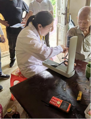 活动最后,队员们进行了健康义诊活动。此次义诊主要采用入户走访方式,针对村中的老村干、老党员、空巢老人、因病致贫家庭,并带了米、油等生活必需物资进行慰问。健康义诊期间,队员们还向周边村民进行健康宣讲,并发放推动移风易俗的宣传手册,同学们结合自己所学医学知识,向村民普及医学常识,使村民进一步了解了高血压、糖尿病早防早治的重要性,还对良好的健康生活习惯和饮食方式进行了宣讲。