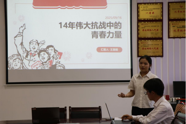 比赛伊始,主持人简要介绍微团课比赛的具体安排及评分标准,强调本次比赛旨在鼓励团员青年以“小切口”讲述“大道理”,用青春视角解读党的理论、党史故事与时代精神,号召青年在比赛中汲取思想养分、凝聚奋进力量。选手展示环节中,6组参赛选手按抽签顺序依次上台,围绕“青年的担当与信仰”“‘三敢’精神”“聆听历史的声音”等主题展开微团课讲授。各组选手们以多元创新的形式演绎红色主题,让微团课堂迸发鲜活力量:有的以PPT动态呈现为基,融入精心剪辑的短视频,将“四渡赤水”等经典红色故事从文字史料转化为沉浸式历史场景,让革命先辈的峥嵘岁月在视听交织中“活”起来;有的结合亲身经历,把参与社区志愿服务的点滴细节、投身暑期“三下乡”实践的真实感悟娓娓道来,生动展现青年在基层治理中解民忧、在助农增收中促发展的实干身影;还有的以历史脉络为轴,带领观众回望那段波澜壮阔的峥嵘岁月,在“穿越时空的钟声”里重温初心使命,让红色基因中蕴含的奋进力量直抵青春心底。