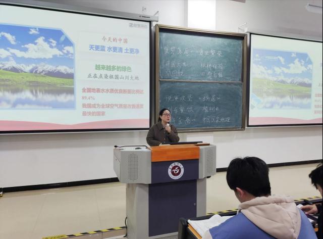 以《七十五载迎盛世,砥砺前行续华章》为题,王东红从“经济持续健康发展、民主之路越走越宽、文化发展更加繁荣、人民生活极大改善、美丽中国焕发新颜”五个部分带领同学们深入了解了新中国成立七十五年来日新月异的变化发展。她以经济发展为始,展示了新中国成立以来,从贫穷落后到成为世界第二大经济体的巨大飞跃;以民主制度体系、文化发展现状、人民生活质量为线,详细介绍了新中国在政治政策与经济建设上的探索与成就;最后以新时代中国新建设、新面貌为尾,阐释了新中国在不断发展的同时坚持绿水青山就是金山银山的精神,展现中国对环境保护的高度重视与坚定决心。