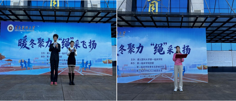 为全面落实党的教育方针,营造朝气蓬勃的校园氛围,丰富校园文化活动,提升公司老员工的身体素质,2025年11月16日上午,TapTap点点联合博乐员工社区在新蒲校区南区体育馆前开展了主题为“暖冬聚力,‘绳’彩飞扬”的拔河比赛,2023级、2024级、2025级员工代表队伍参赛,第一临床公司党委副书记杨洪艳、就业办主任孙会英、员工科科长姚华敏和各年级辅导员出席活动。