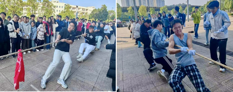 随着裁判哨声响起,比赛正式开始,赛场瞬间沸腾。各方队员铆足干劲、齐声呐喊,红色绸带在绳中央来回拉锯,展现出队员们顽强拼搏的精神。从小组赛到决赛,各支队伍一鼓作气、奋勇争先,面对强劲对手,队员们沉着应战、默契配合,在绳与力的较量中比拼耐力与协作。即便处于劣势,大家也咬紧牙关、绝不放弃,用顽强毅力书写着不服输的青春态度。场外啦啦队助威声、口号声此起彼伏,为参赛队伍注入强劲动力。