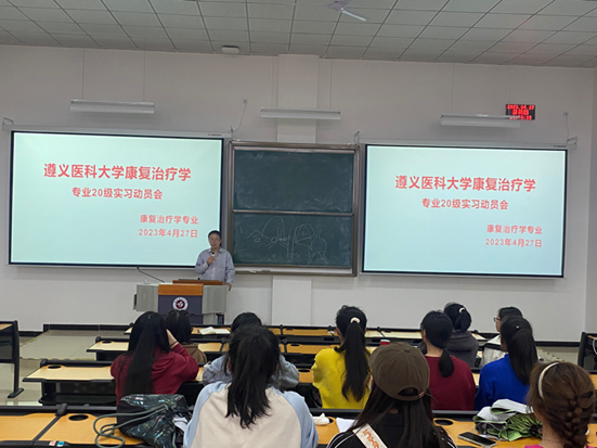 岁月如梭,三年的在校理论与实践技能学习时间很快过去了,2020级康复治疗学专业的学子们即将奔赴省内外各临床教学实习基地。为了让同学们充分了解各实习点情况及实习期间注意事项。康复治疗学专业于2023年4月27日下午18:30-21:30在新蒲校区第二十九阶梯教室开展了实习前动员会议。会议由教研室赵红波老师组织,康复医学教研室熊伟主任、基础医公司李彩玉老师、康复医学教研室全体教师、2019级康复治疗学专业各实习点组长与2020级康复治疗专业全体同学共同参加。