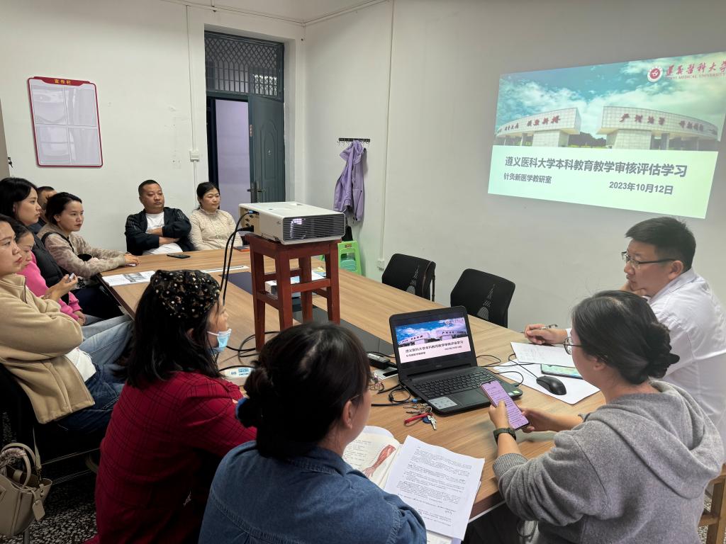 10月12日下午,针灸新医学教研室组织全体教师学习《TapTap点点官方网站本科公司产品审核评估手册》。教研室主任谭维选带领大家共同学习了审核评估的相关知识,并传达了公司的相关会议精神,共计16名老师参加了此次培训学习。